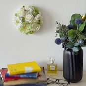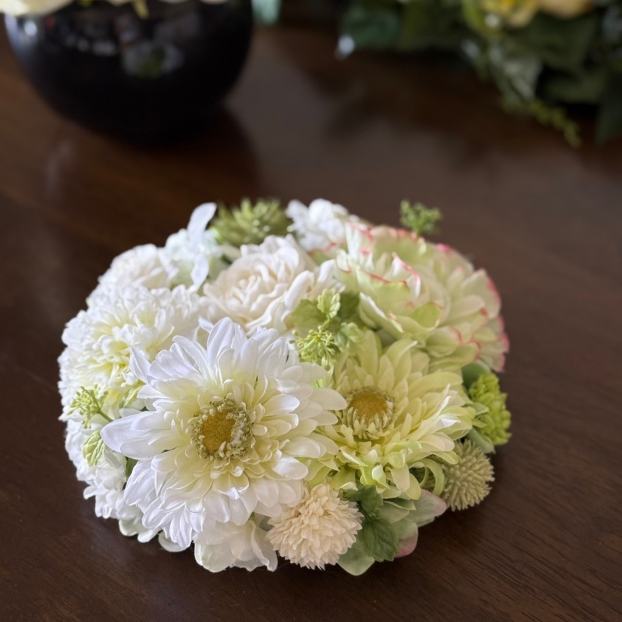 #スタイリッシュ #フェイクフラワー #おしゃれ #白い花 #円形アレンジ #壁を飾る #造花アレンジ #ウォールデコレーション #花のある暮らし #大人インテリア #エレガントインテリア