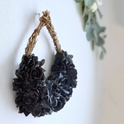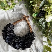 黒いアーティフィシャルフラワー(造花)だけで作った雫型のリースです。