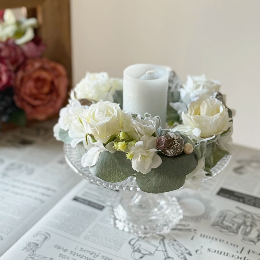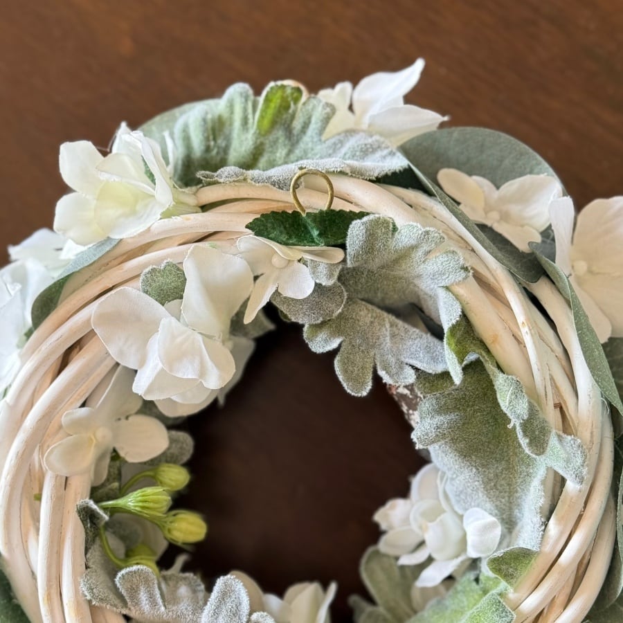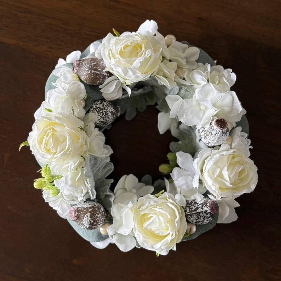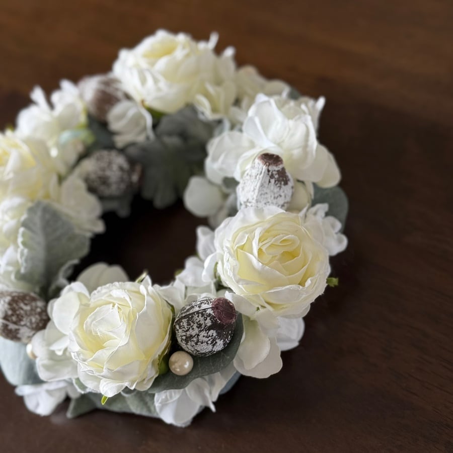 #フェイクフラワー #ミニリース #造花リース #白いリース #白い花のリース #ユーカリ