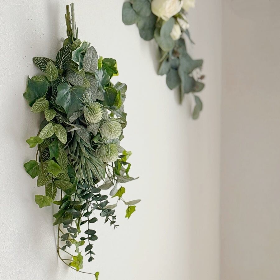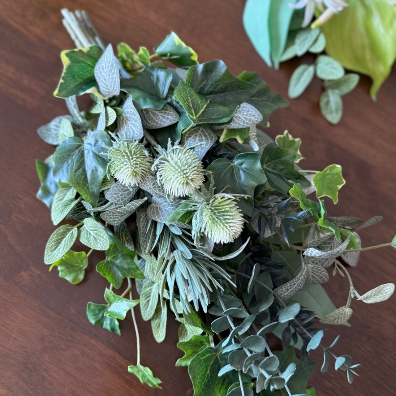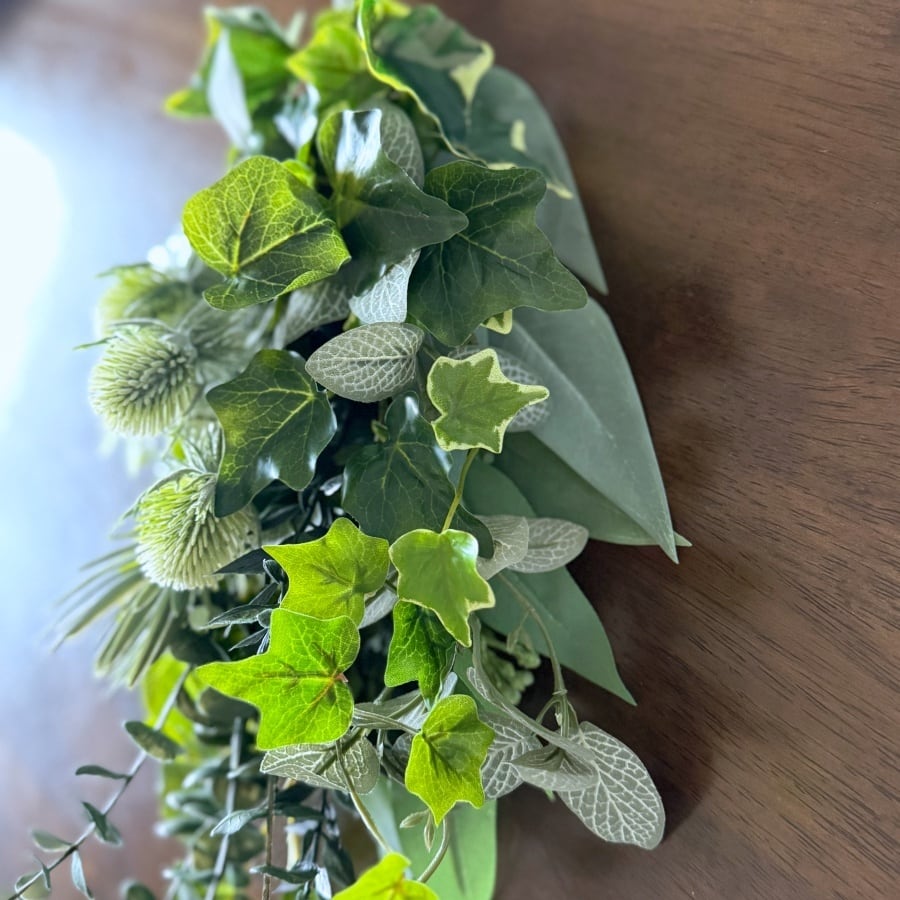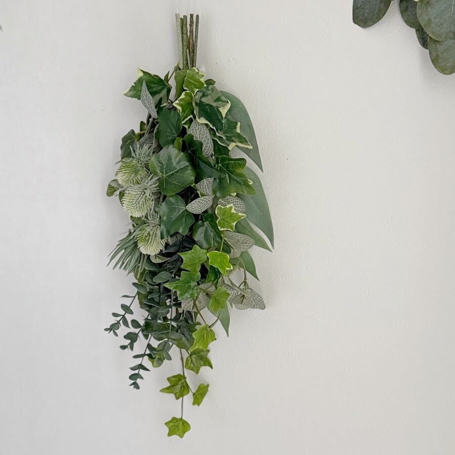 【グリーンスワッグ】アイビー ユーカリ アザミ|オールグリーンですっきりシックに|アーティフィシャルフラワー