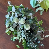 アイビー(2種類)、ユーカリ(2種類)、フィットニア(2種類)、ルスカス、アザミ