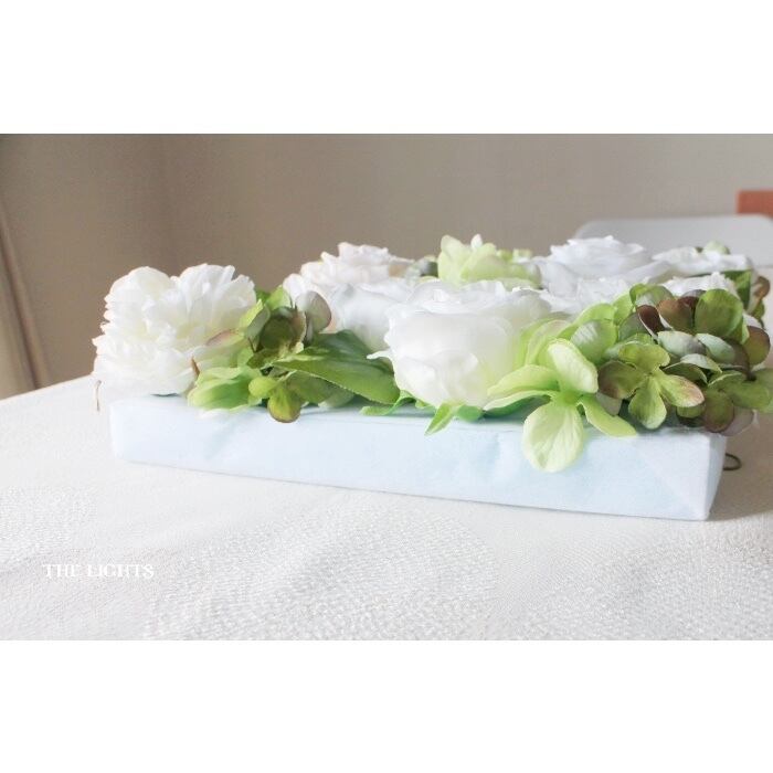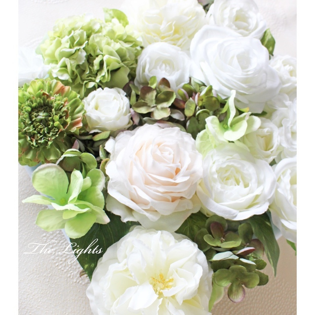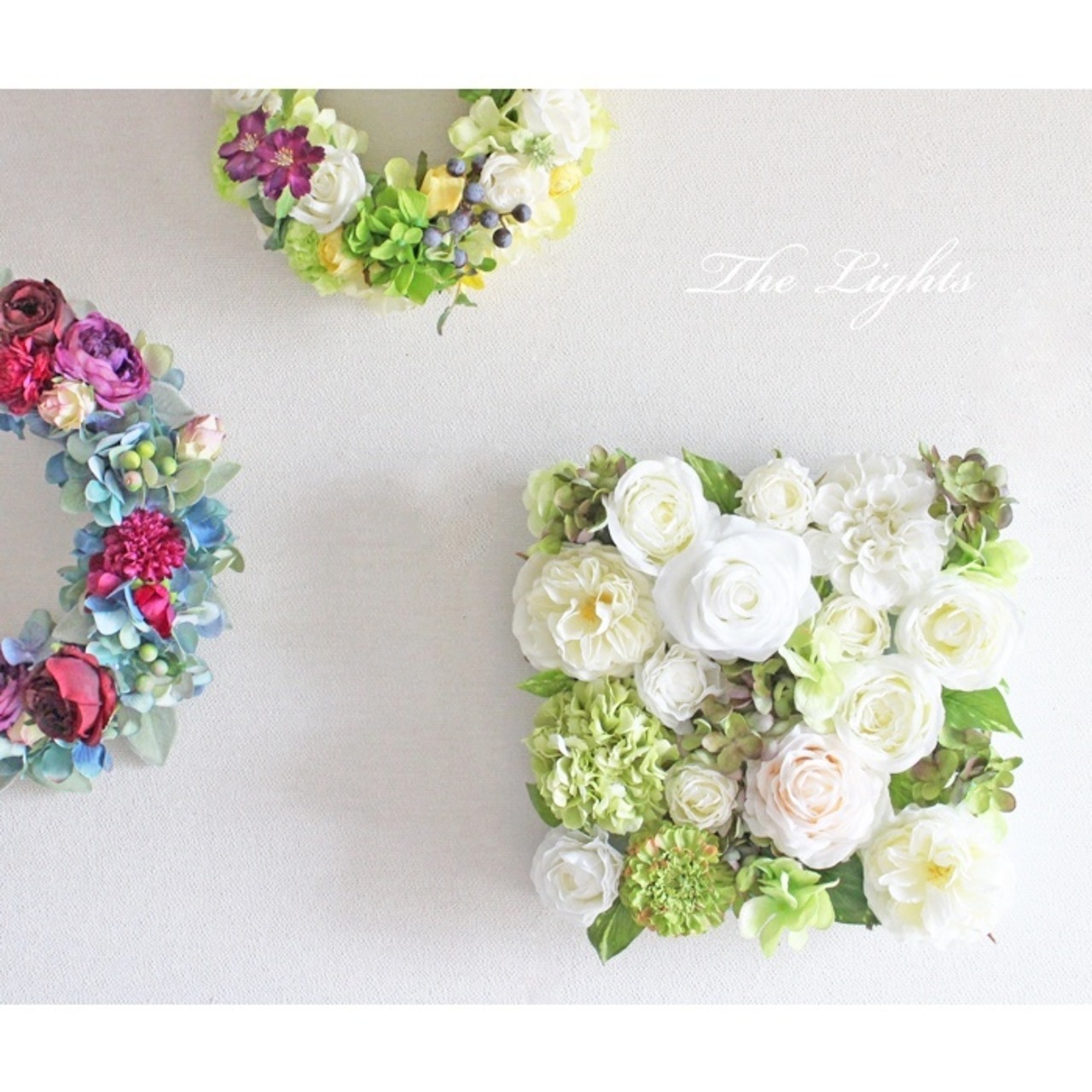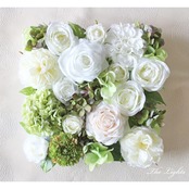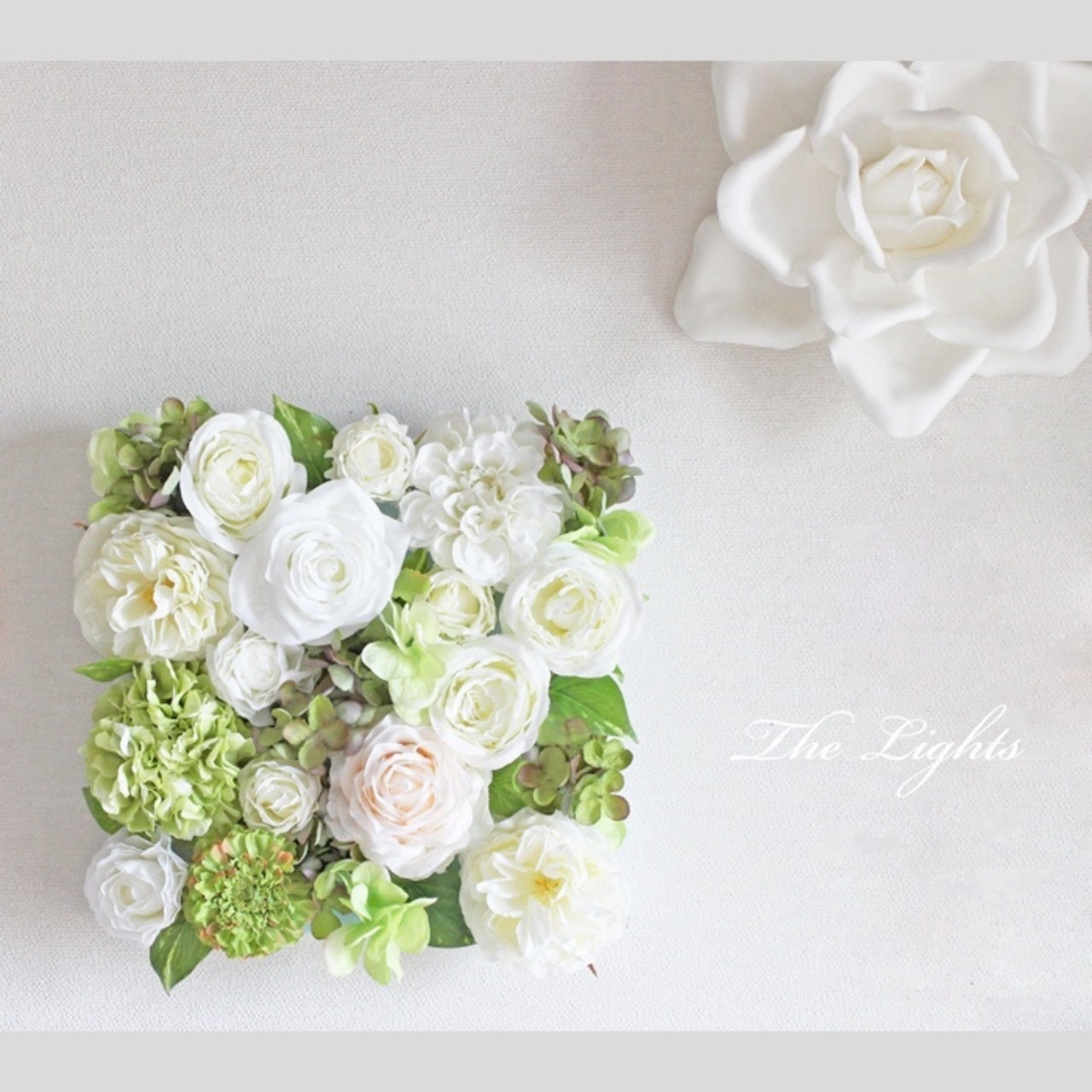 インテリアフラワー・インテリア好き・エレガント・上品・すっきり・大人っぽい・白緑・正方形・壁を飾る・壁掛け・造花・造花アレンジ・模様替え・新生活・女の子・女性らしい