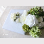 人気の白とグリーンのアーティフィシャルフラワーを使った、華やかで爽やかなフラワーボード。
