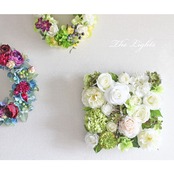 ハンドメイド好き・自分で作る・初心者OK・壁を飾る・壁飾り・ドア飾り・インテリア・おうち時間・エレガント・お花がいっぱい・緑・白緑・楽しい・趣味・自分磨き・趣味探し・やってみる・新作・正方形・インテリアフラワー