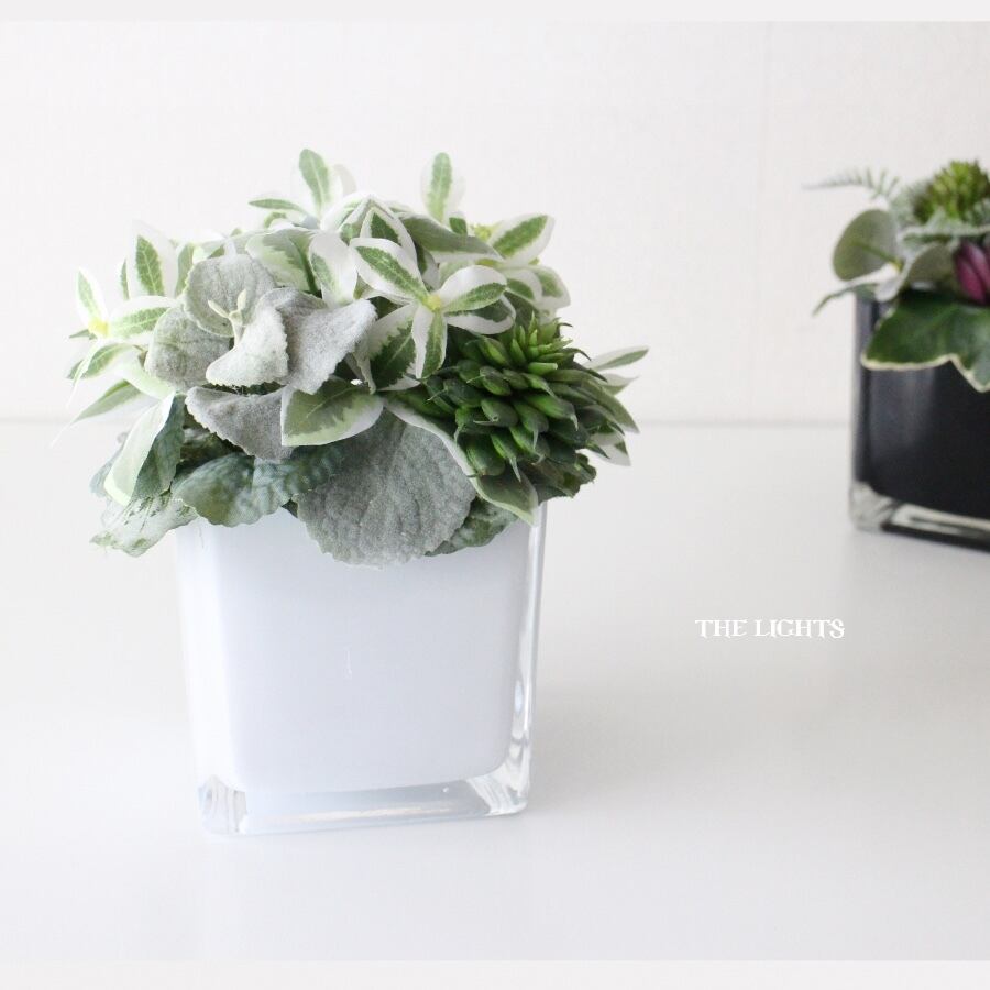 新生活・インテリア・白と緑・模様替え・インテリアフラワー・個性的・エレガント・上品・高品質・ギフト・インテリアグリーン・グリーンインテリア・葉っぱ・多肉植物・すっきり・大人っぽい・都会的・スタイリッシュ・癒し・観葉植物・リビング・寝室・ベッドルーム・フェイクグリーン