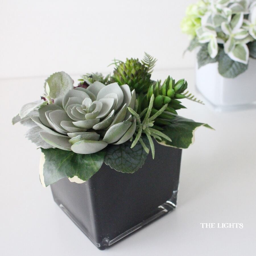 新生活・インテリア・黒と緑・模様替え・インテリアフラワー・個性的・クール・上品・高品質・ギフト・インテリアグリーン・グリーンインテリア・葉っぱ・多肉植物・すっきり・大人っぽい・都会的・スタイリッシュ・癒し・観葉植物・リビング・寝室・ベッドルーム・フェイクグリーン・フェイクプランツ