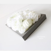 グレーの小さなフレームいっぱいに白い花をアレンジしました。
