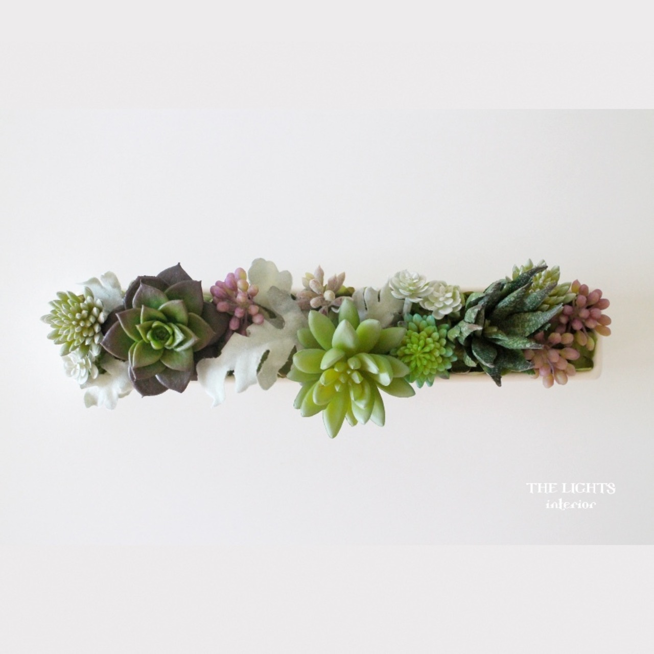 ・多肉植物のグリーンインテリア|白と緑のフェイクグリーンアレンジ