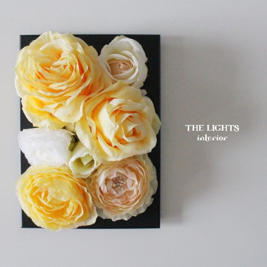 [完売しました]黄色い花のフレームアレンジ|黒い額とアーティフィシャルフラワーで壁を飾る