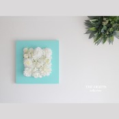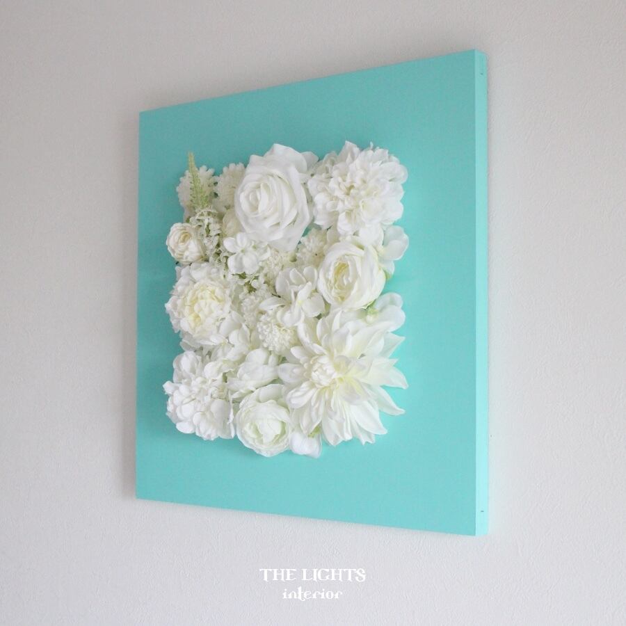 [完売しました]エメラルドグリーンに白い花が映える四角いフラワーパネル|壁掛けアレンジ