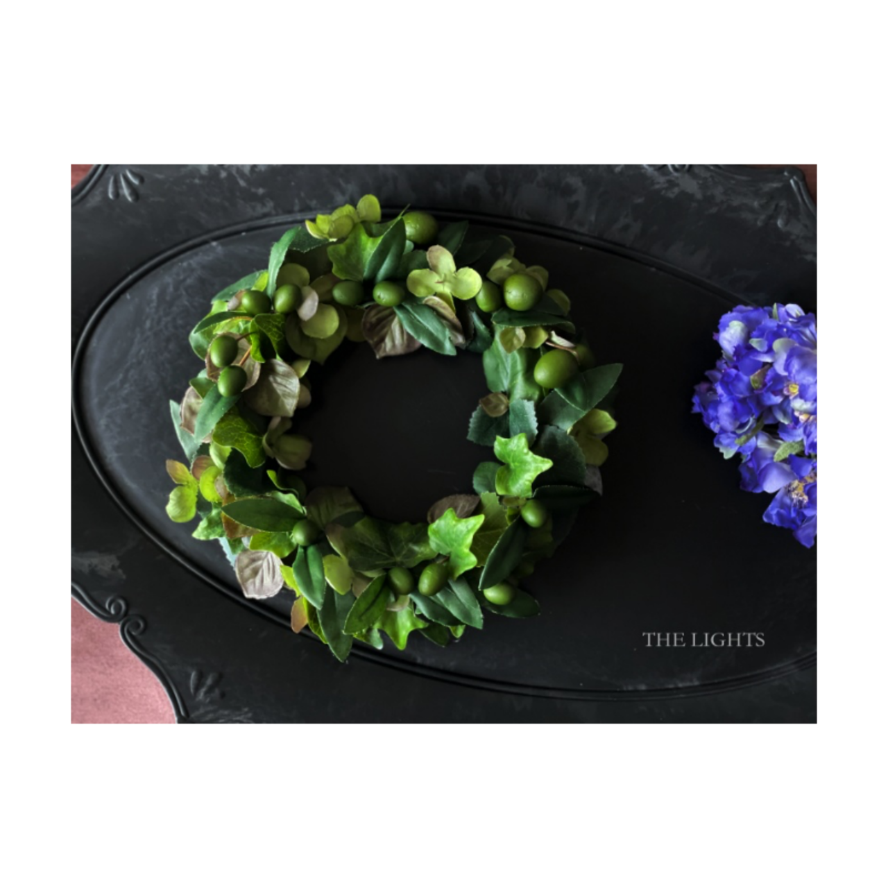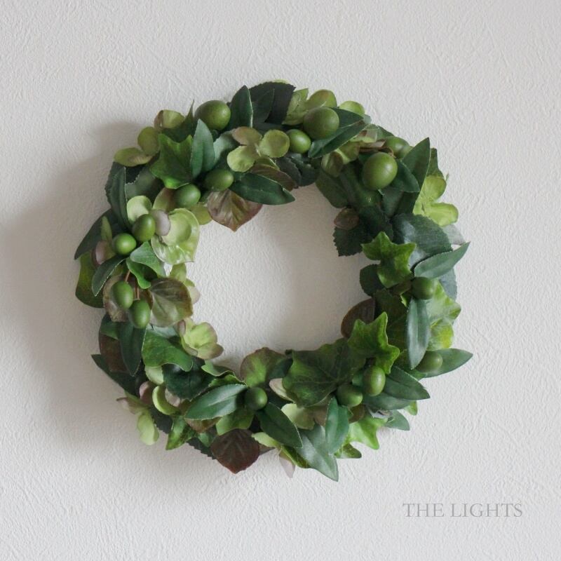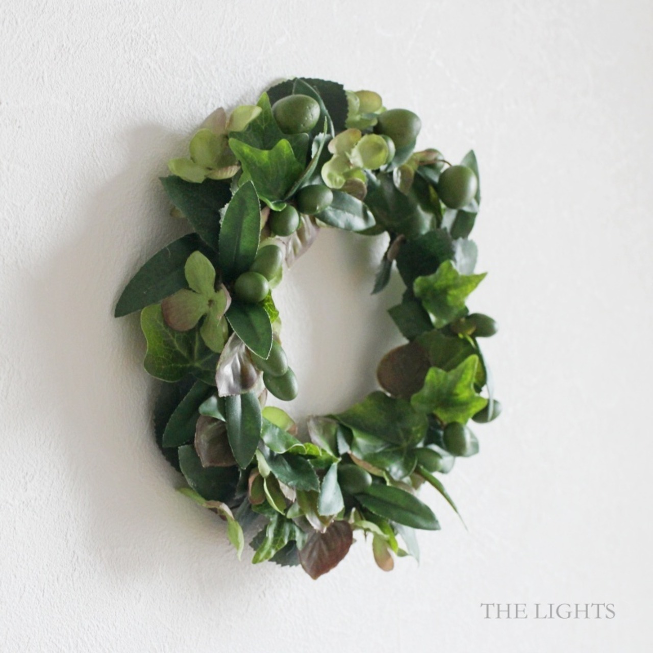 [完売しました]グリーンオリーブとアイビーのミニリース|シンプルデザインのおしゃれインテリア