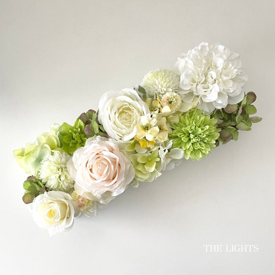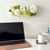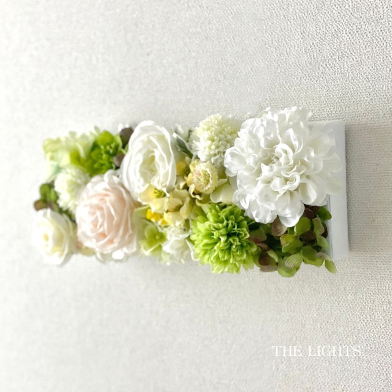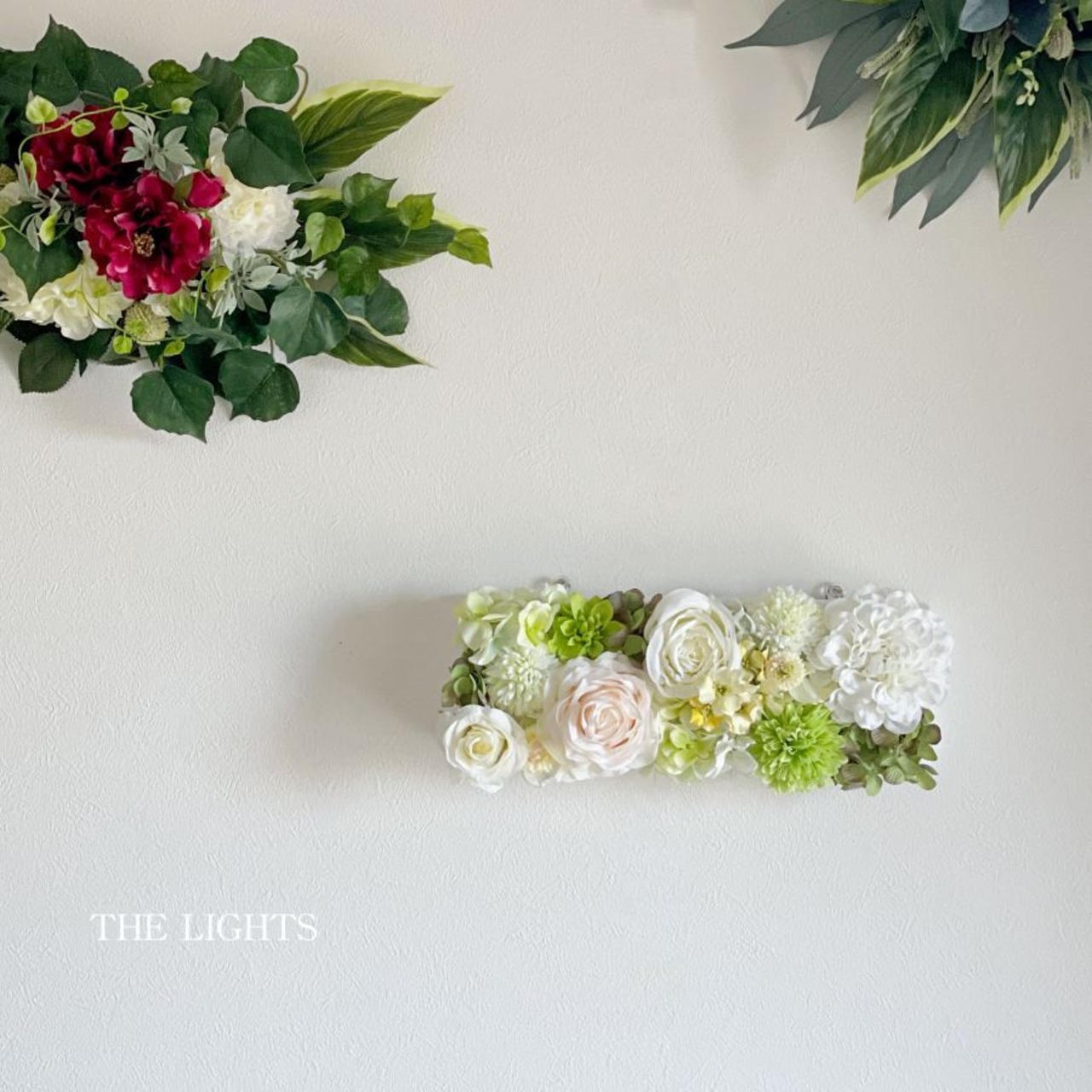 [完売しました]白とグリーンのフラワーボード<長方形> デスク前におすすめのインテリアフラワー