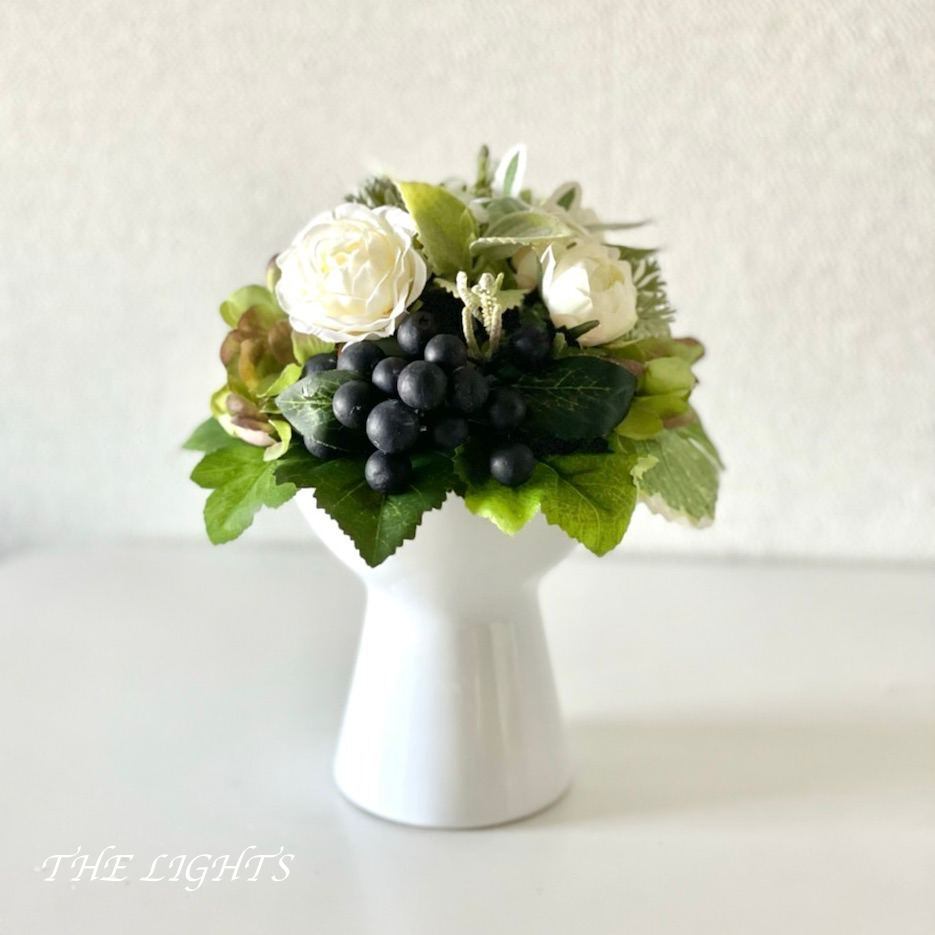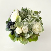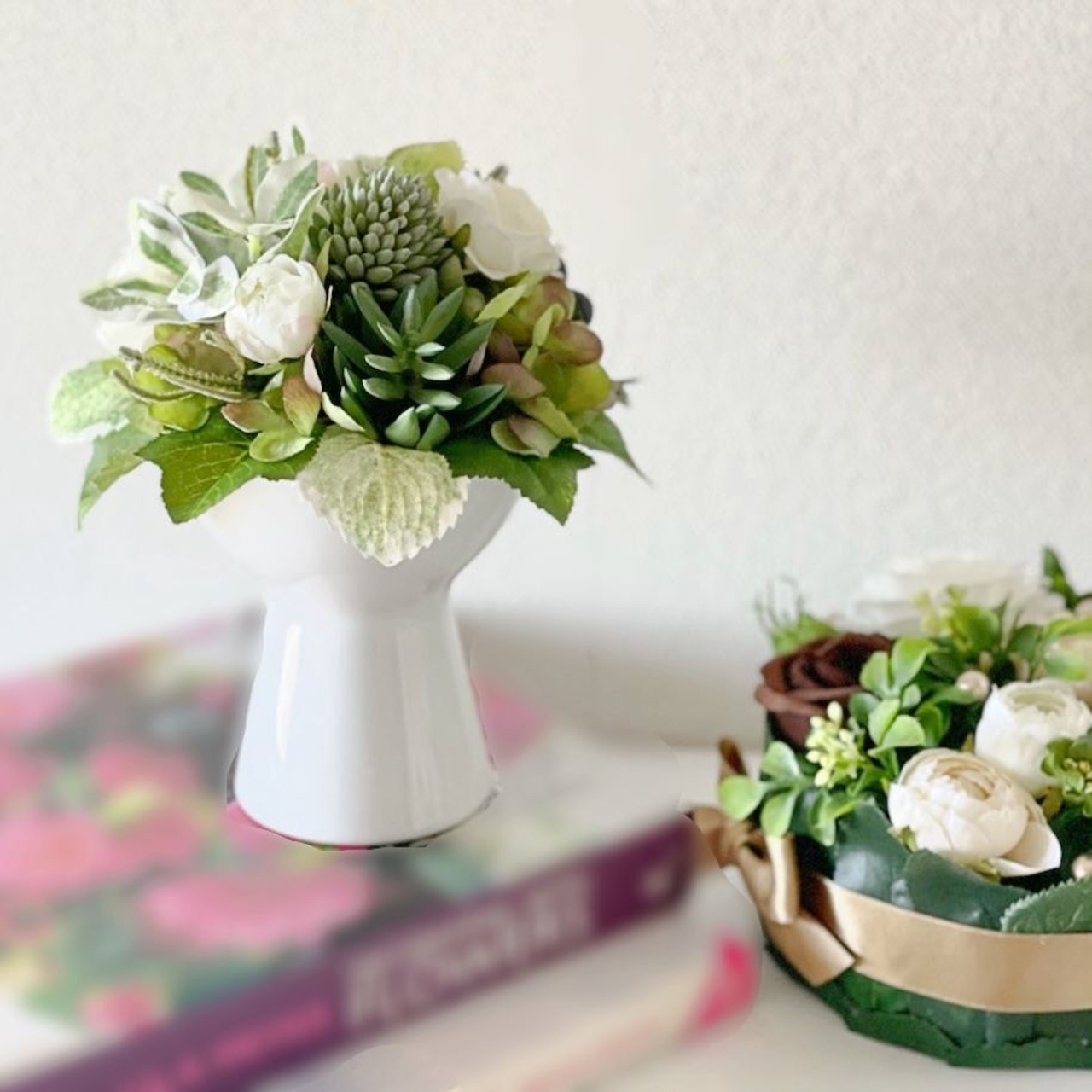 [完売しました]白い花と多肉植物のグリーンインテリア|白と緑のフェイクグリーンアレンジ