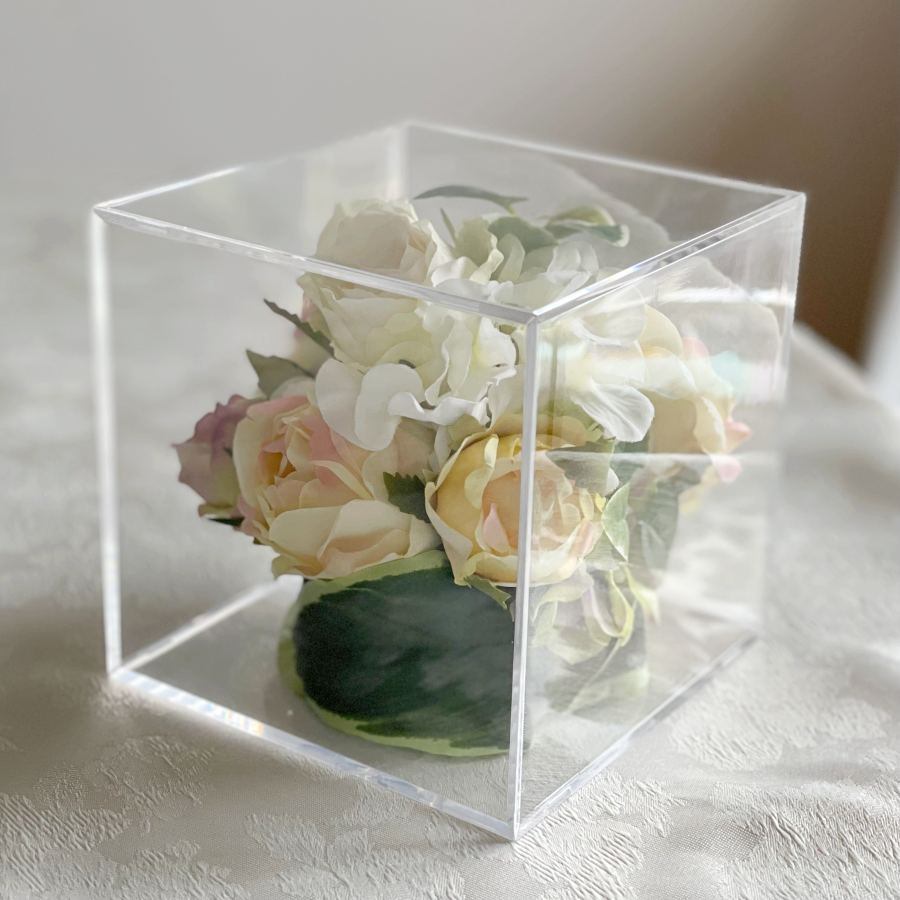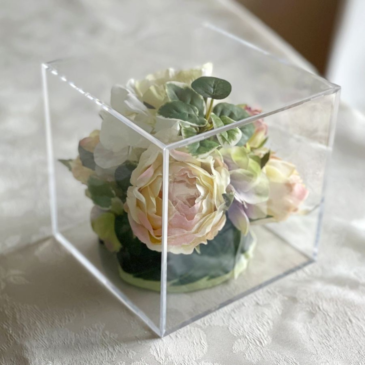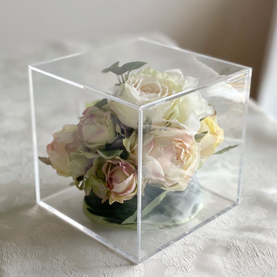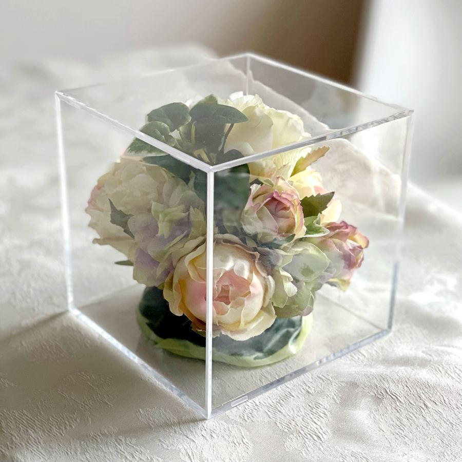 透明のケースに入っていて、直接お花に埃がつくことがないので、お手入れがとても楽です。