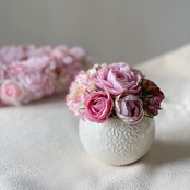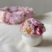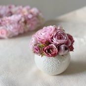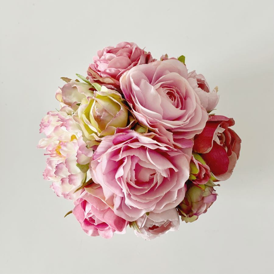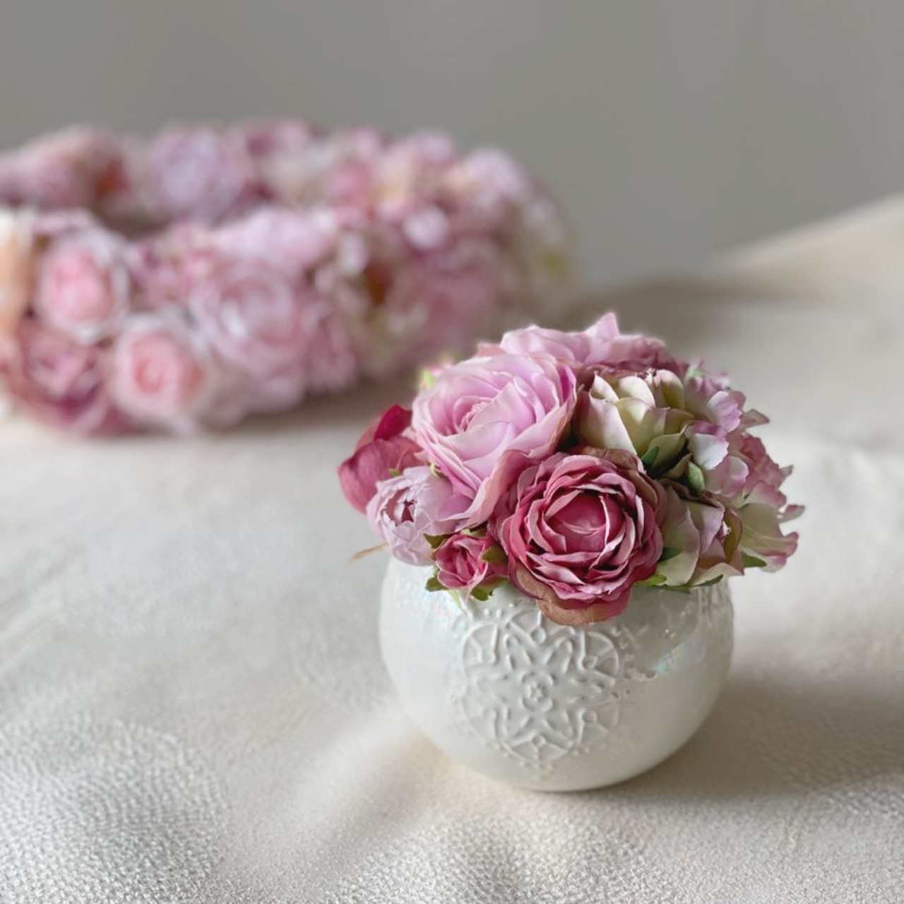 [完売しました]【コンパクトでリーズナブル】ピンクのアーティフィシャルフラワーが可愛い小さなアレンジメント