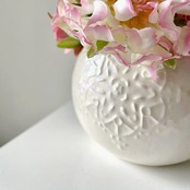 表面に柄が入っていて光沢がある花器を使用しているので、ちょっとした華やかさも感じていただけるかと思います。