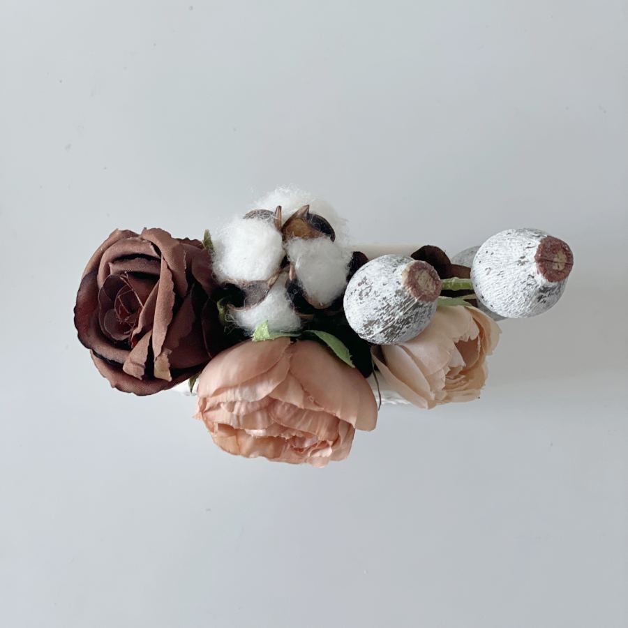 茶系のお花で揃えた小さなフラワーアレンジメント。