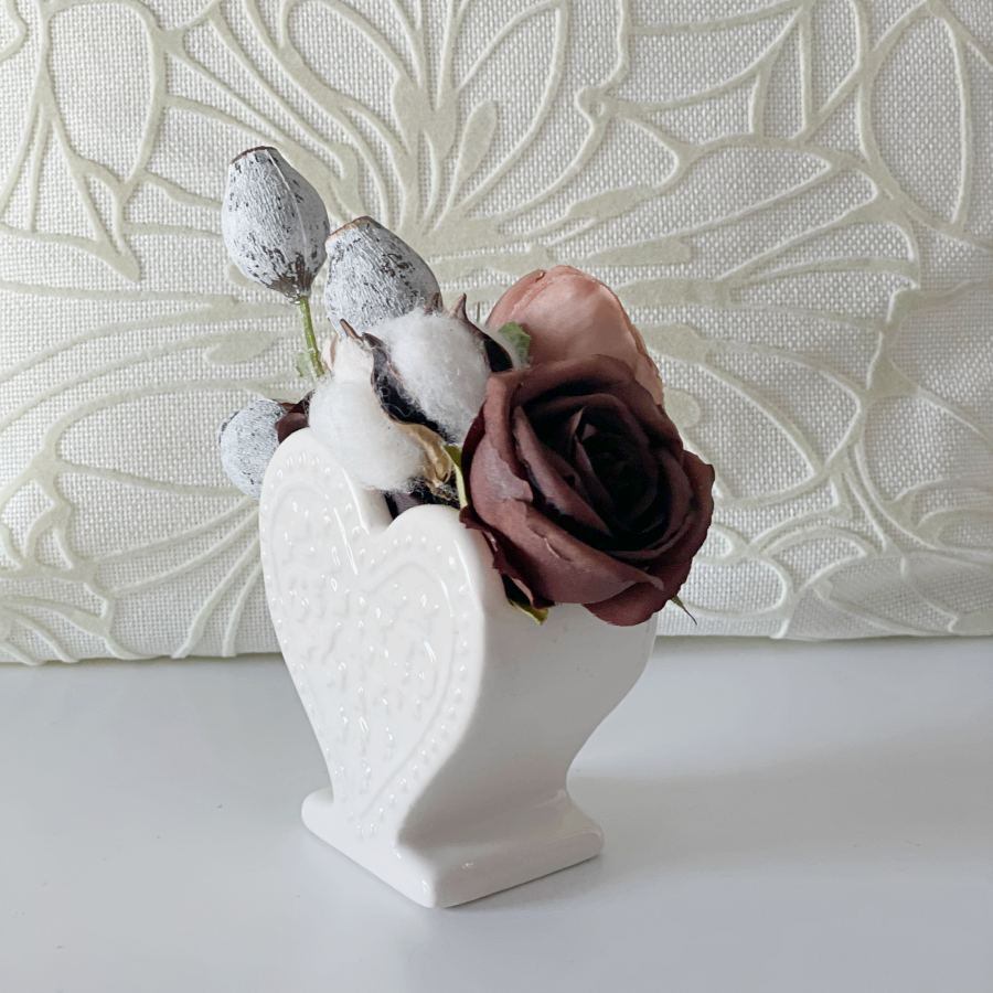 [完売しました]【コンパクトでリーズナブル】ブラウンのアーティフィシャルフラワーで落ち着いた雰囲気に 造花の小さなアレンジメント