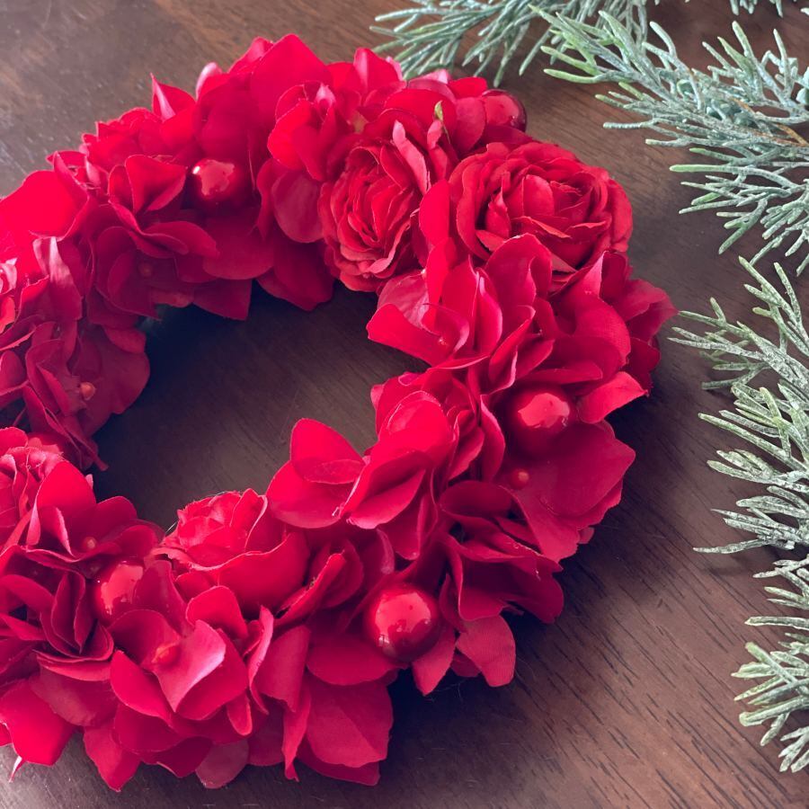 [完売しました]【直径19㎝】小さなバラと紫陽花の真っ赤なリース|アーティフィシャルフラワー