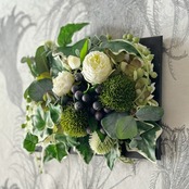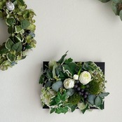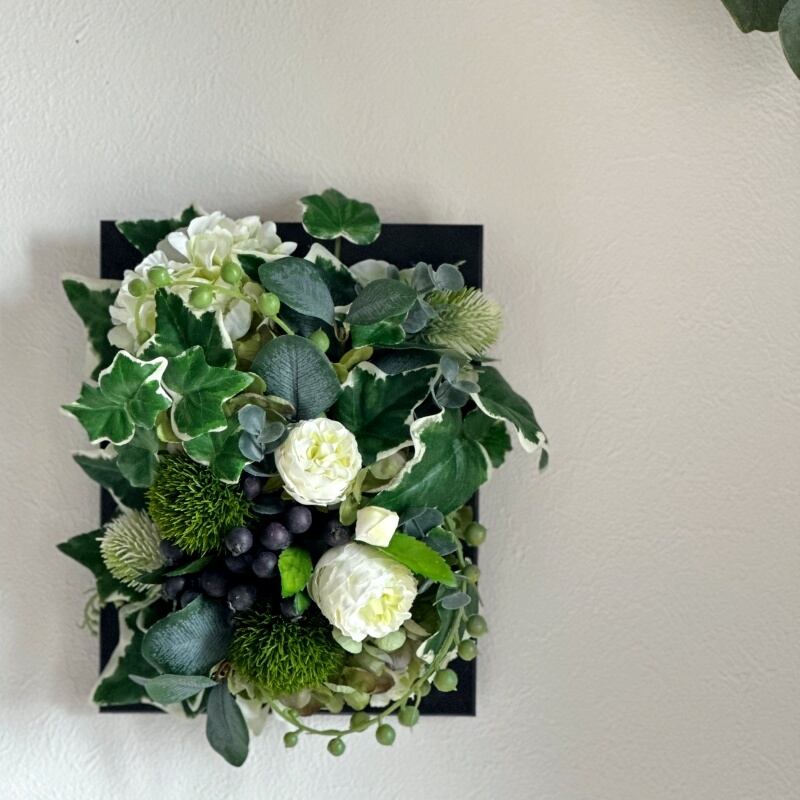 [完売しました]グリーンと白の壁掛けフレームアレンジ|アーティフィシャルフラワー