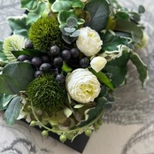 アイビー、ユーカリ、ローズ、ラナンキュラス、グリーントリュフ、紫陽花、グリーンネックレス、エリンジウム